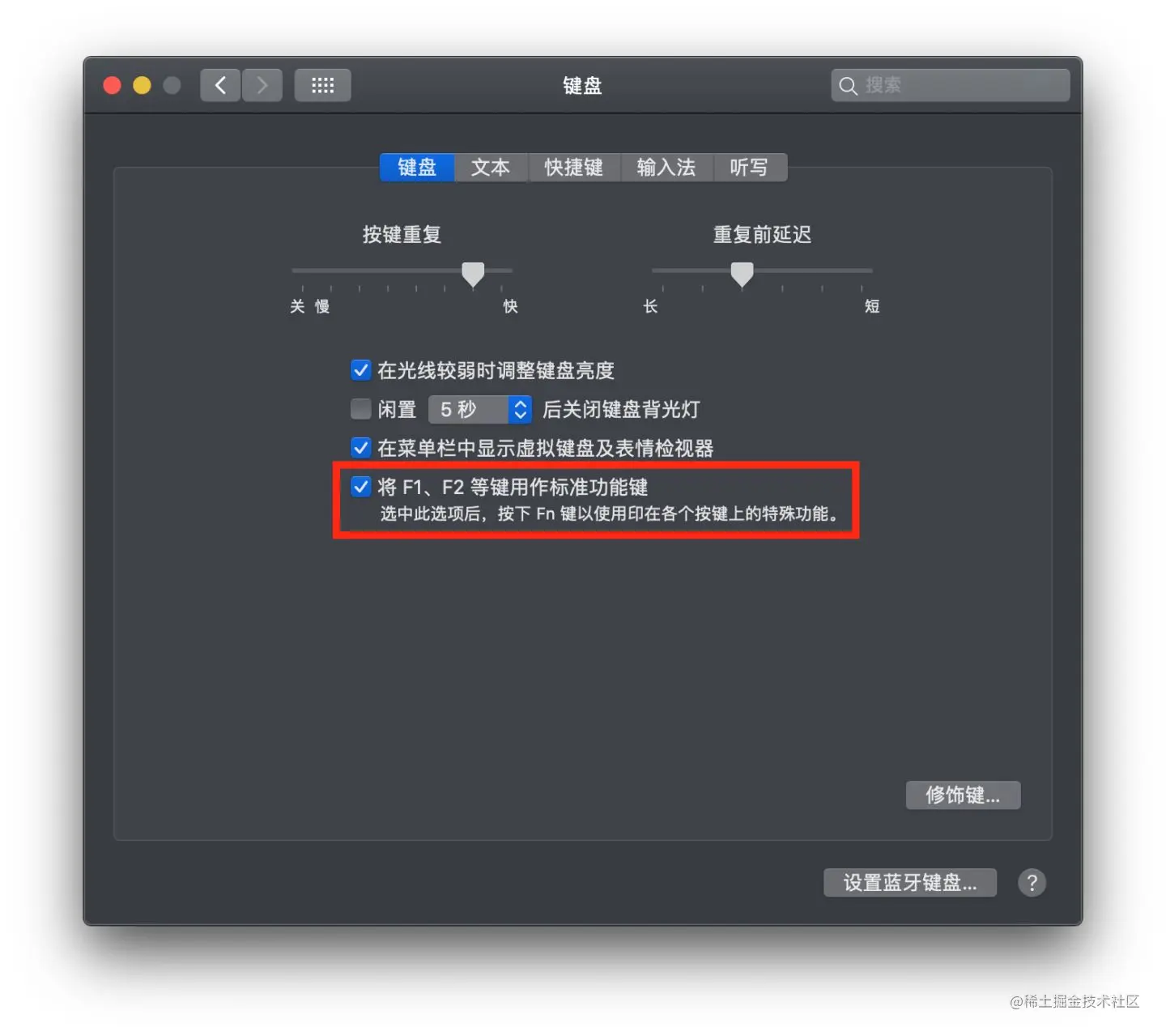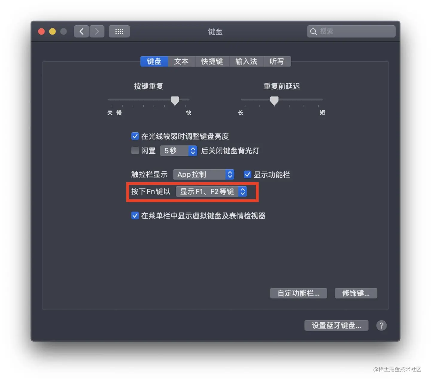 这里需要说明一点,功能键只适用于没有 Touch Bar 的 MacBook,对于新款的带 Touch Bar的 MacBook,只能使用其他的组合快捷键,比如 Cmd+P 什么的。至于原因嘛,那是因为新款 MacBook 的功能键只能显示在 Touch Bar 上,你只能分别针对应用打开功能键,也就是说,你只有打开这个应用时,才会在 Touch Bar 上显示功能键,可是我们要的是在任何地方通过快捷键呼出终端,我不能先打开终端,再使用功能键打开终端。。。这是个先有鸡还是先有蛋的问题,所以还是选其他快捷键吧。