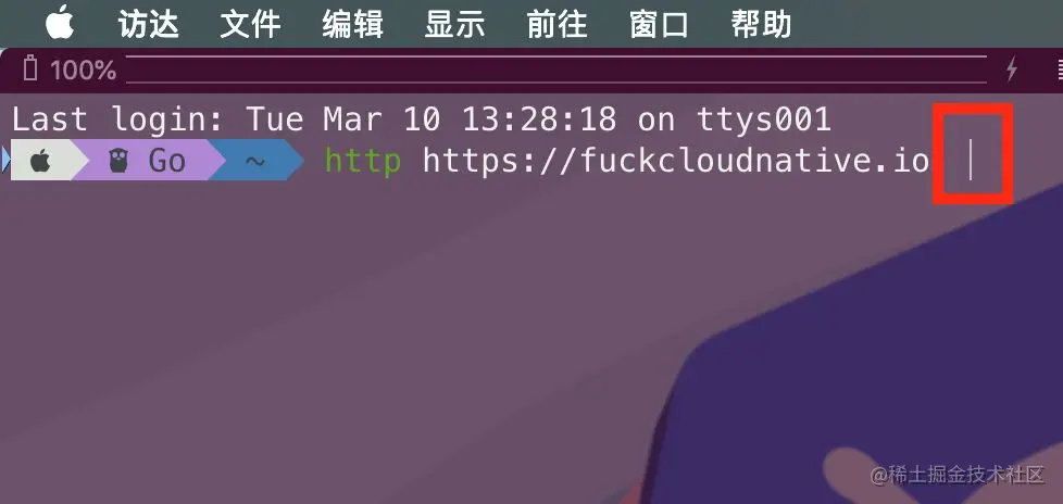 在安装完 iTerm2 的 shell integration 后会在终端界面中最左侧多出一个蓝色三角形的标记。如图: