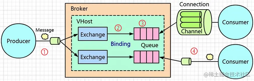 - 消息从Exchange路由到Queue。