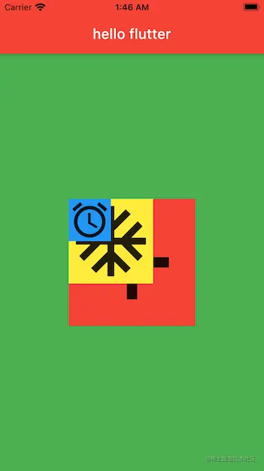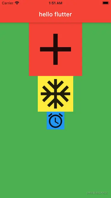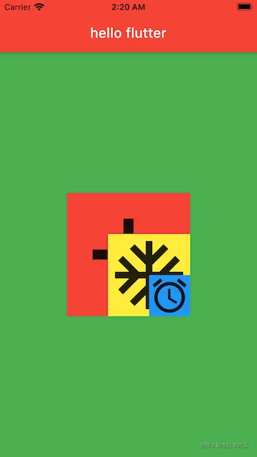 Container类里有一个alignment属性,翻译过来应该叫对齐方式,这个属性用来控制Container的子控件相对于它自身的一个位置。在我们iOS开发中,我们知道坐标系的原点是在左上角。而在flutter中,坐标系的原点在父控件的正中心,可以使用这个alignment属性来控制子控件在父控件中的位置,它有两个参数分别是double类型的x,y。取值是-1到1,当0,0的时候表示子控件在父控件的正中心;当1,0的时候,表示子控件位于x方向上的最右侧,y方向上居中;当-1,-1的时候,表示子控件位于父控件的左上角位置。有点类似于CALayer的anchorPoint属性。如图代码如下: