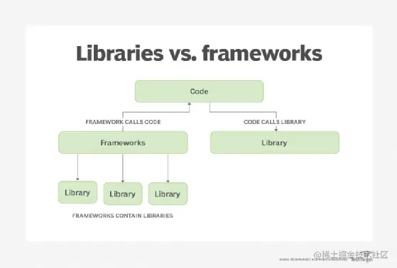 最后,库和框架之间的一个关键区别因素是两者之间的相对控制反转 (IoC)。IoC 通常被称为好莱坞原则。与库不同,框架对开发人员编写的代码采取“不要打电话给我们,我们会打电话给你”的方法。 要使用库开发应用程序,开发人员必须实例化库组件并调用其中存在的类和接口的方法。例如,如果开发人员想要使用 java.net 库来创建他们自己的 RESTful 应用程序,他们将需要调用各种 API 来打开端口、处理 HTTP 连接、将数据格式化为 XML 或 JSON 表示形式来回通信,以及当客户端发起请求时发起一个请求。 另一方面,框架负责支持项目核心功能所需的所有底层管道。只有在需要时,框架才会调用开发人员提供的代码。