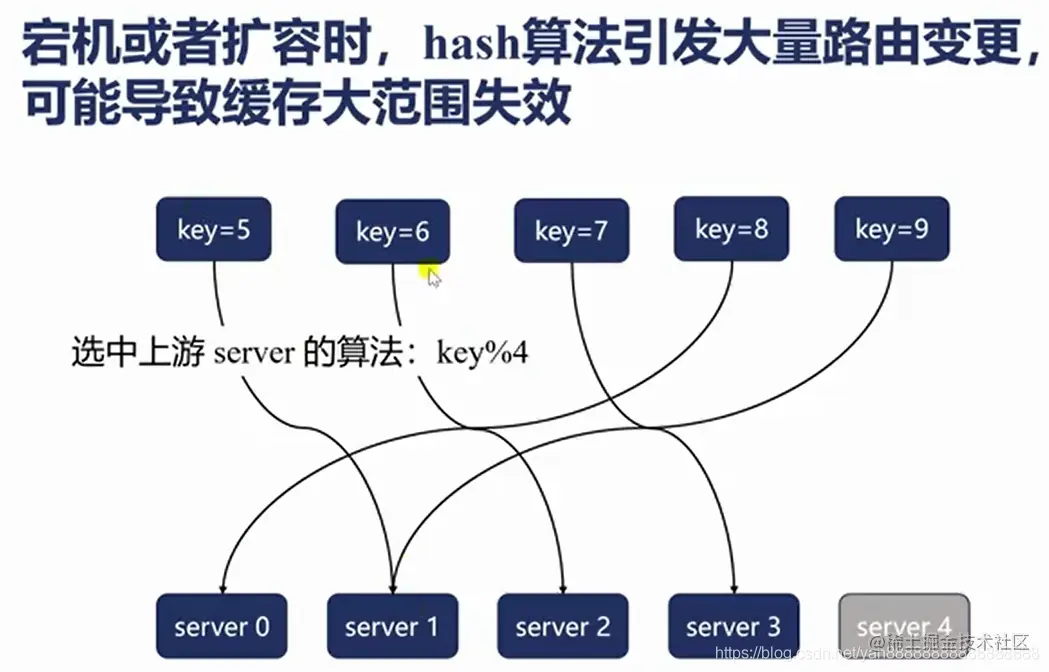 ip_hash算法,在增加和服务器宕机时会导致会话和缓存丢失