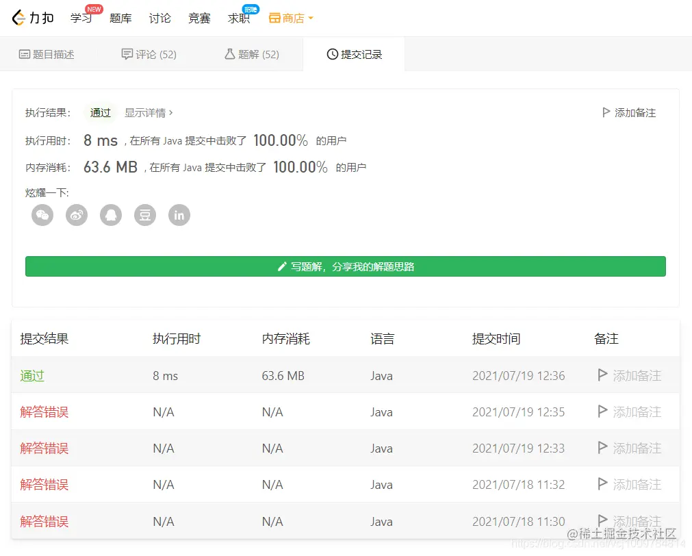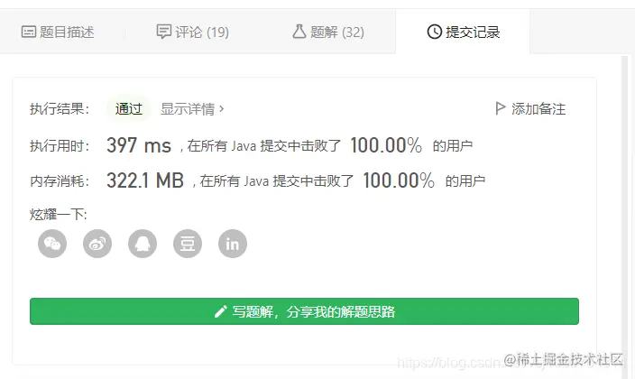 看完题解后,自己动手写了一遍(注意开数组时,在方法内部开,不要用最大的长度开,那样会超时,坑死我了!)
