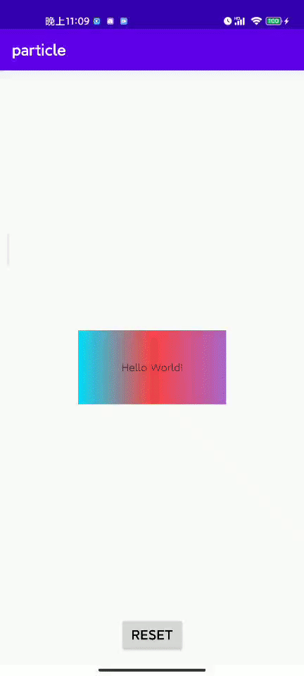 粒子的动画使用 ValueAnimator 来控制,可以自行定义 animator 来控制动画的行为,包括动画时长、Interpolater、重复、开始结束的监听等等。