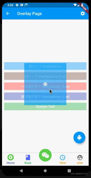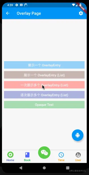 如果需要展示多个 OverEntry 浮层元素时,只能用 insertAll 添加到 Overlay 中,其中默认是以栈方式加入的;其中 insertAll 会一次性的把所有 OverEntry 均加入到 Overlay 中;