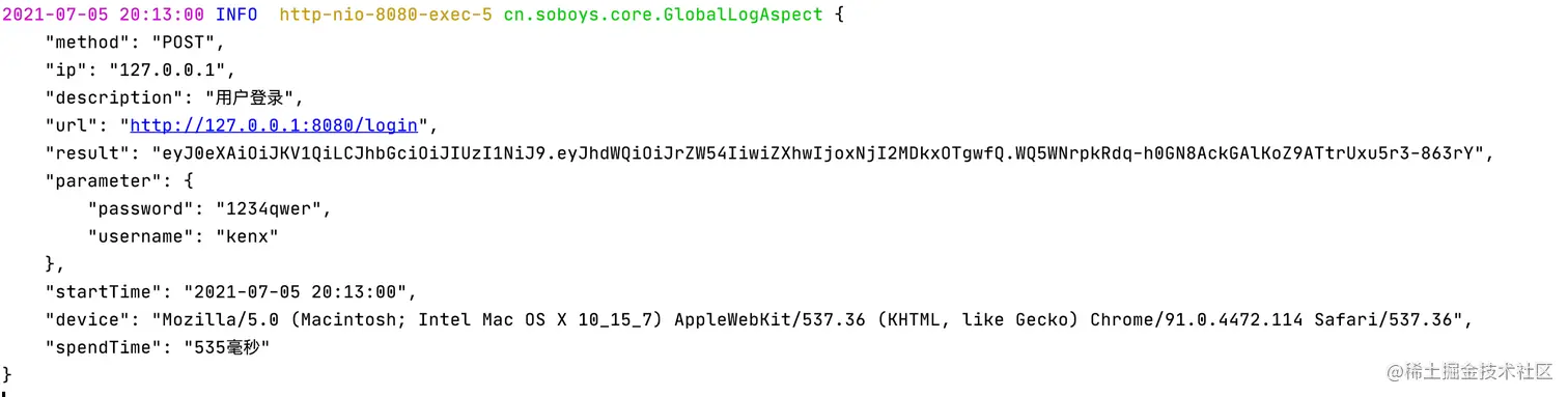 大型完善项目中肯定是需要一个全局日志拦截,记录每次接口访问相关信息,包括: 访问ip,访问设备,请求参数,响应结果,响应时间,开始请求时间,访问接口描述,访问的用户,接口地址,请求类型,便于项目的调试追踪