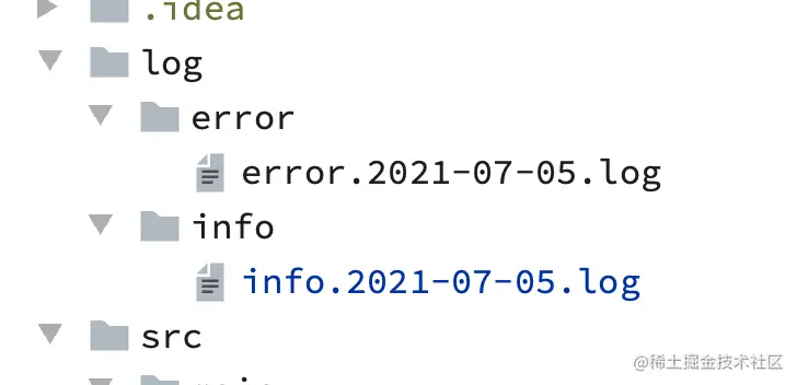 这里我把日志分成两个日志文件,一个错误日志,一个信息日志,按照明天一个日志文件方式