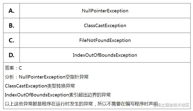 答:ClassCastException(类转换异常)