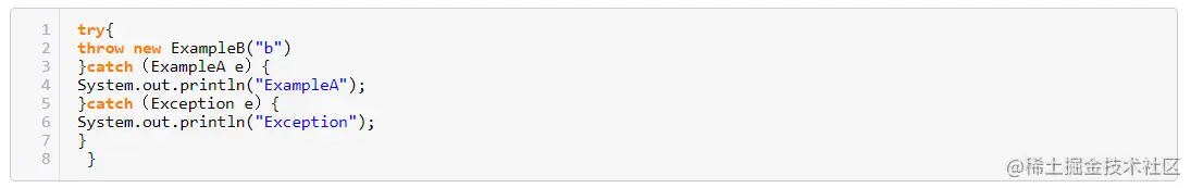 9.类ExampleA 继承Exception,类ExampleB 继承ExampleA