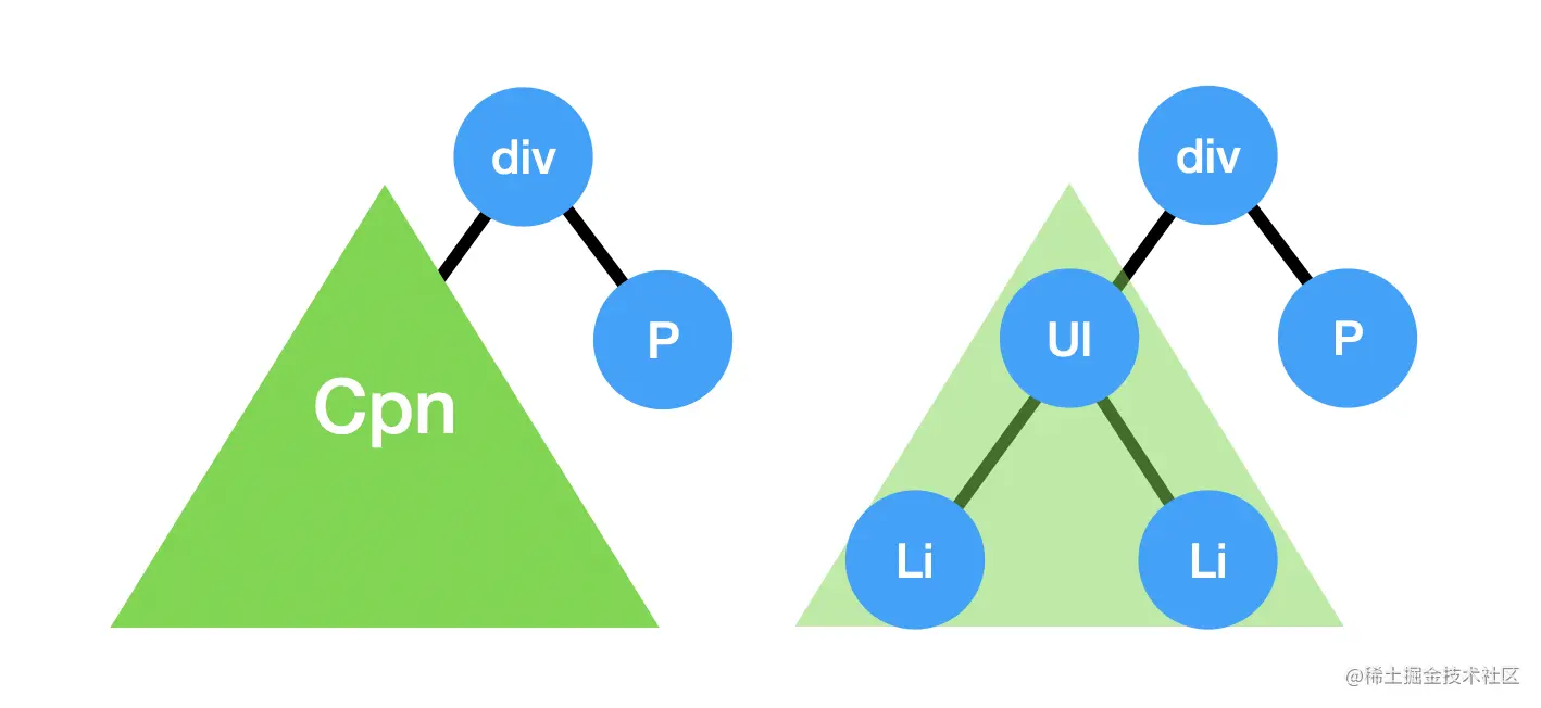 假设有如下组件树,其中Cpn是一个自定义组件,内部结构为ul>li*2: