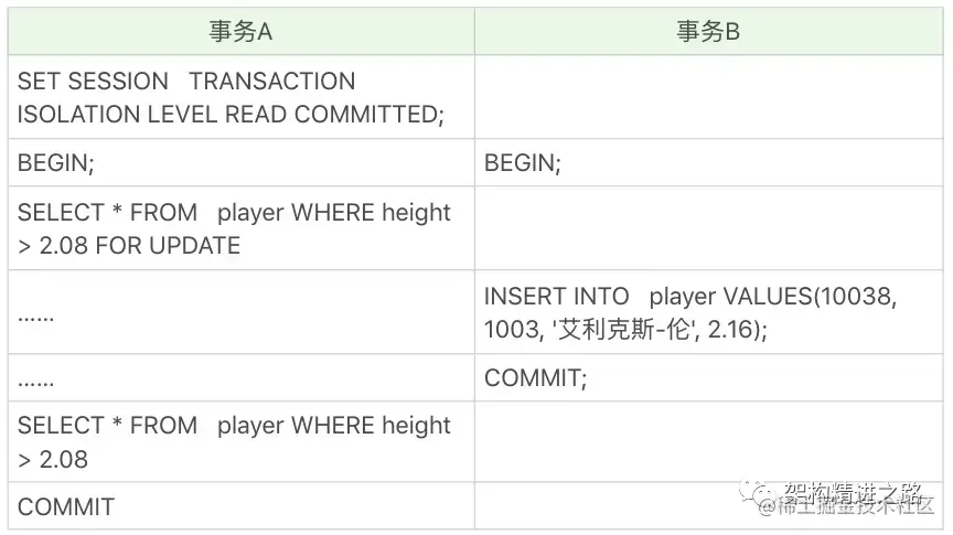 这是因为采用了 Next-Key 锁,会将 height>2.08 的范围都进行锁定,就无法插入符合这个范围的数据了。然后事务 A 重新进行条件范围的查询,就不会出现幻读的情况。