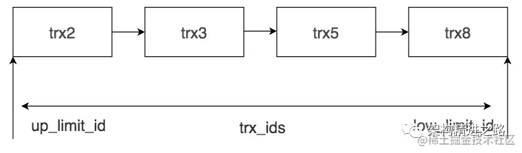 trx_ids,系统当前正在活跃的事务 ID 集合;