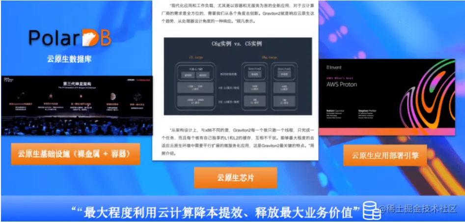比如说,今天阿里云的云原生数据库,它实际上就是基于云原生提到的核心的思想理念,比如说无限弹性、高度可扩展,提出了一个全新的数据库架构,使得数据库的本身非常容易去扩展,能够去应付极高的、极为苛刻的流量和海量的数据处理需求,满足今天现代互联网应用的数据库使用的诉求。