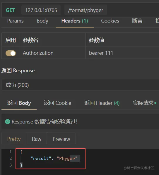bearer 格式的 token,就无法访问接口了。