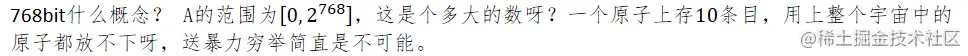 768bit什么概念? A的范围为0, 2768,这是个多大的数呀?一个原子上存10条目,用上整个宇宙中的原子都放不下呀,送暴力穷举简直是不可能。