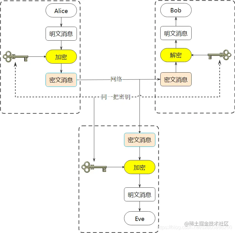 - 加密密钥可以被窃听者窃取