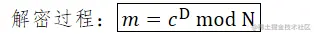 RSA解密流程同加密流程一样简洁,可以使用下面的公式表达: