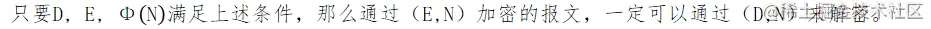 这里的D,E在数学上必须满足一定关系才行,否则无法对报文进行解密。