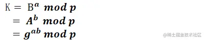 最后Alice和Bob计算出的共享密钥可以通过数学公式证明是相等的。因此通过DH密钥协商,最终双方协商出了只有两个人知道的共享密钥。