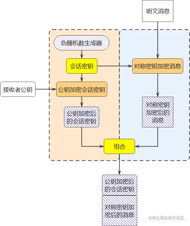 会话密钥:是指为本次通讯生成的临时密钥,它是对称密码算法的密钥,同样也是公钥密码的明文。