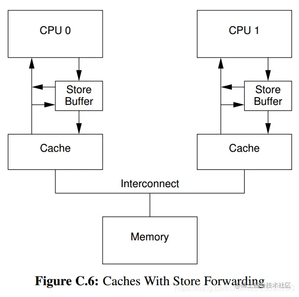 出现问题的原因是我们有两份”a”的拷贝,一份在cache-line中,一份在store buffer中。硬件设计师的解决办法是**“store forwarding”**,当执行load操作时,会同时从cache和store buffer里读取。也就是说,当进行一次load操作,如果store-buffer里有该数据,则CPU会从store-buffer里直接取出数 据,而不经过cache。因为“store forwarding”是硬件实现,我们并不需要太关心。