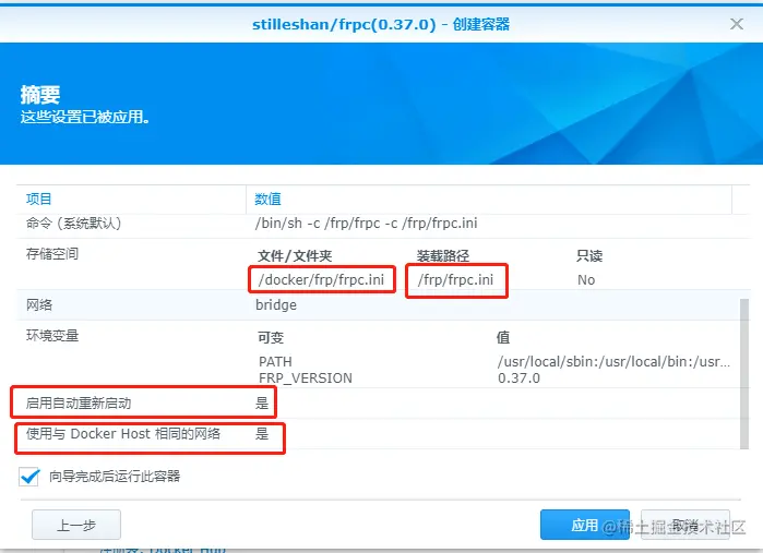 4.7 确认无误,启动容器,检查容器日志,确认容器启动正常。