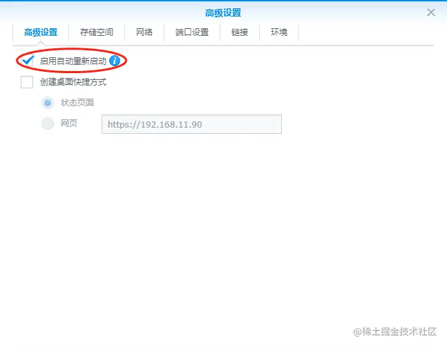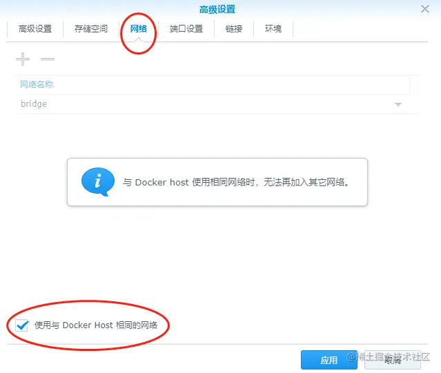 高级设置、存储空间、网络三项设置完成后,点击“应用”。