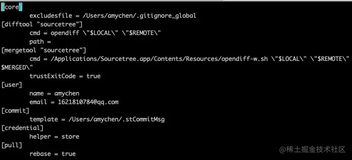 编辑全局级的config:git config --global -e