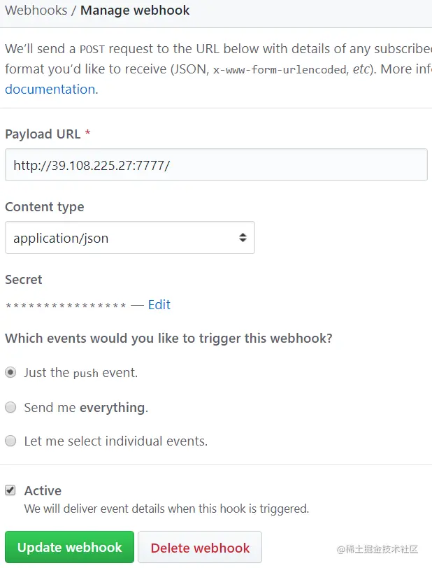 // 上面的 secret 保持和 GitHub 后台设置的一致