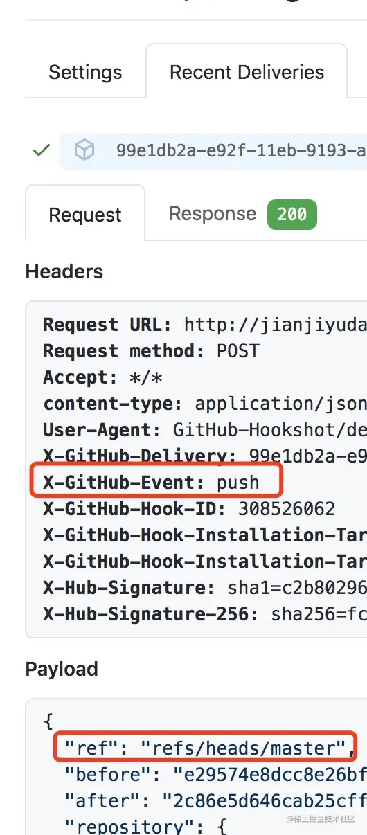 // 判断master分支变动时执行,可根据payload.ref区分分支