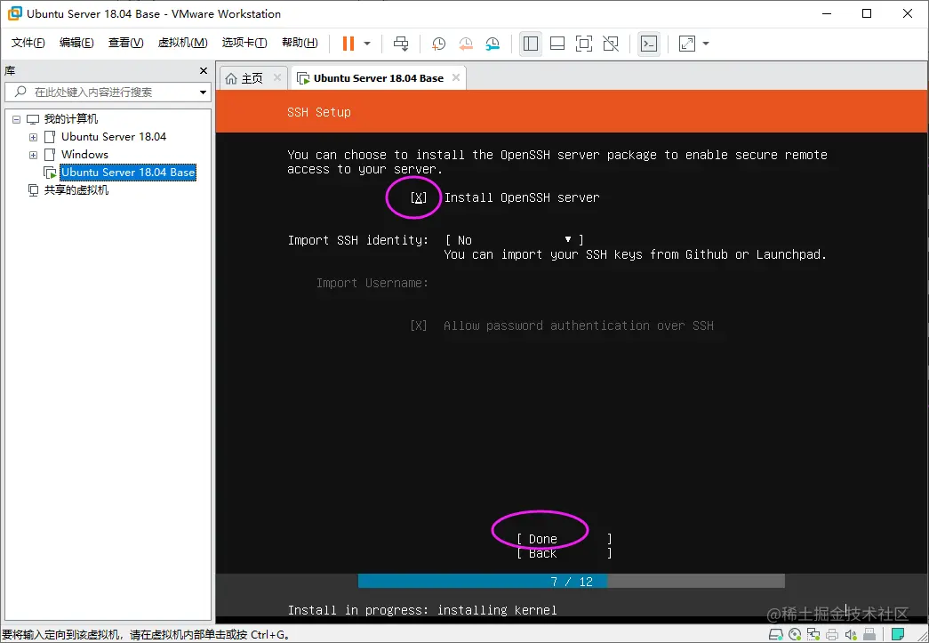 空格键,开启SSH,然后上下键切换到Done按钮,继续 -