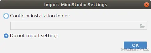 选择不导入 OK。若有以前设置,可设路径如: $HOME/.config/Huawei/MindStudioMS-3.0。