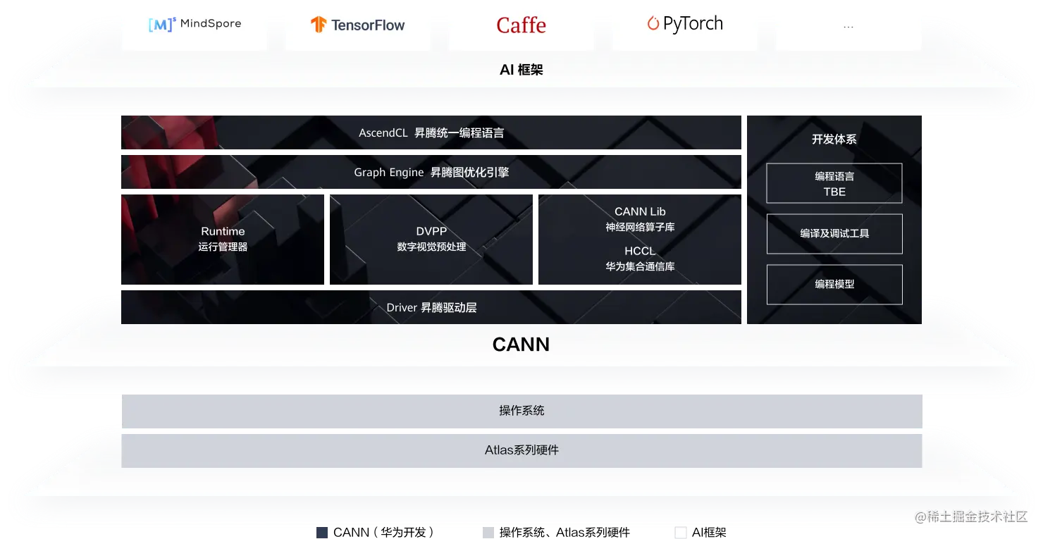 昇腾 CANN 是华为开发的 AI 场景的异构计算架构,支持用户快速构建基于昇腾平台的 AI 应用和业务。