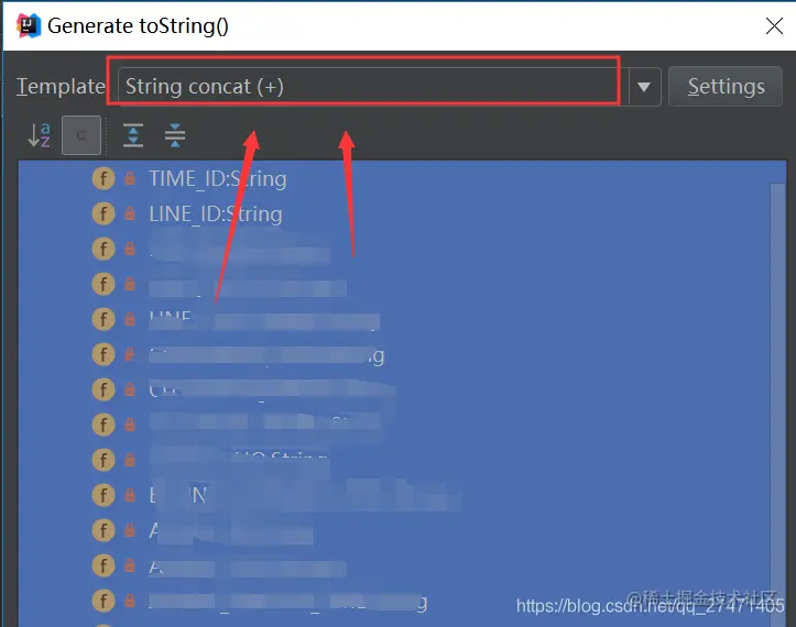然后将下面的内容,复制到你刚新建的模板名字的内容里,记得点击Apply,点击OK之后,然后就可以选中你刚才自己建的那个模板的名字,一键生成toString()方法了