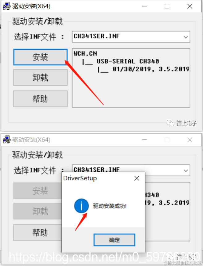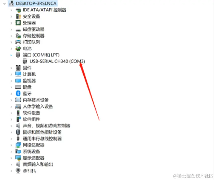 安装非常简单,直接双击ch341ser,点击安装即可。安装成功便可以在设备管理器里面查看对应的COM口了。切记,一定要用USB线连接开发板与电脑。