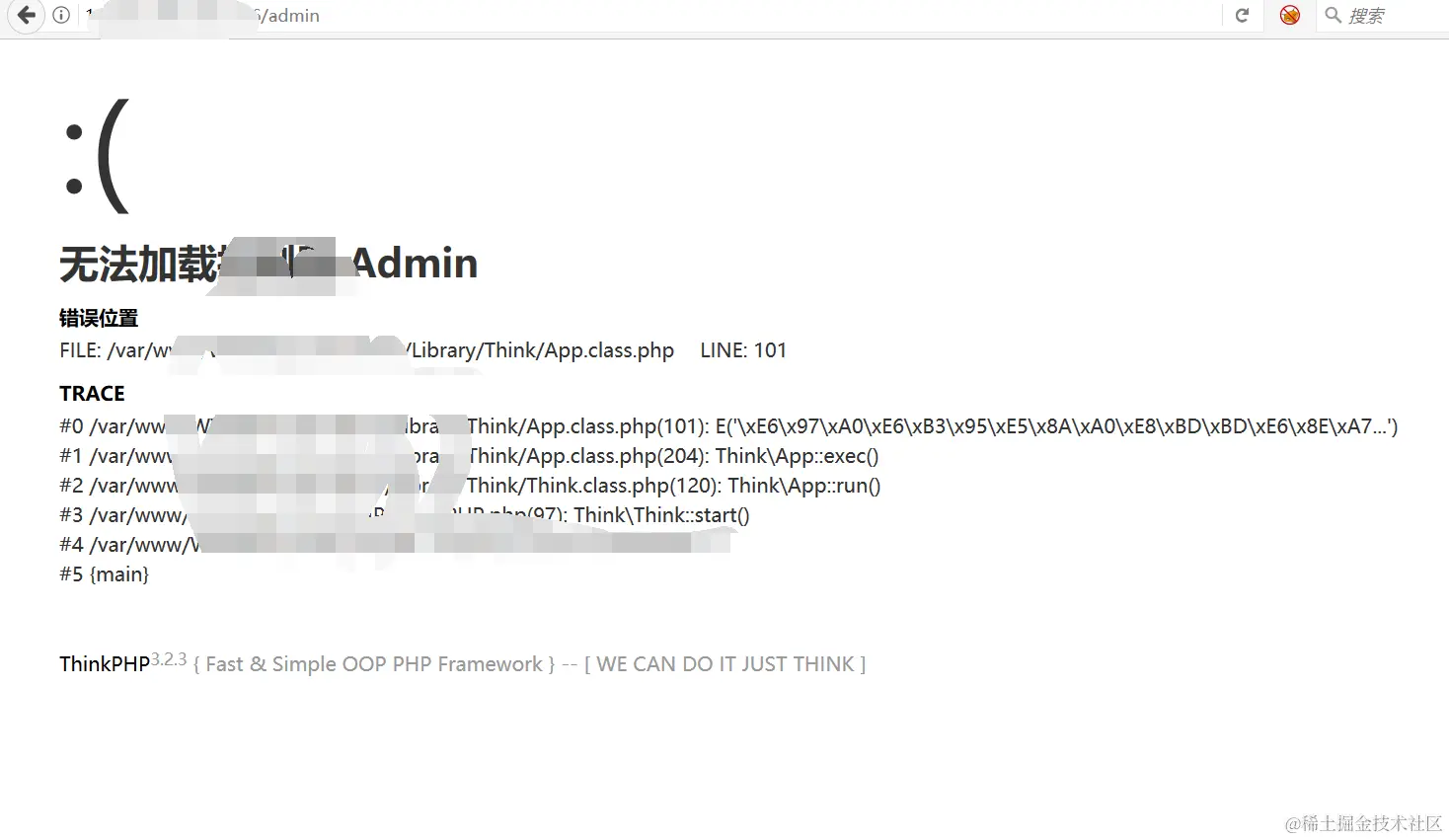 随便加个 admin 路径, 直接报错了