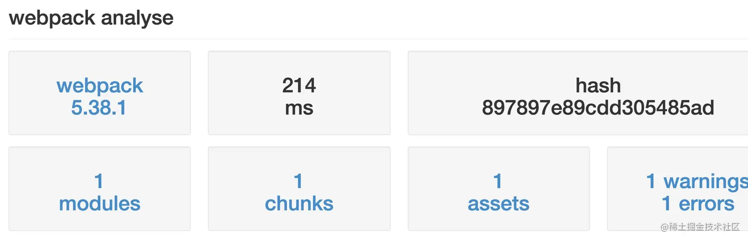 webpack在运行过程中会收集相关统计信息,包含assets、chunks、modules、entrypoints、namedChunkGroups、errors、warnings等信息