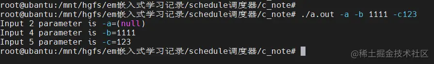 printf("Input %d parameter is -a=%s\n", optind, optarg);