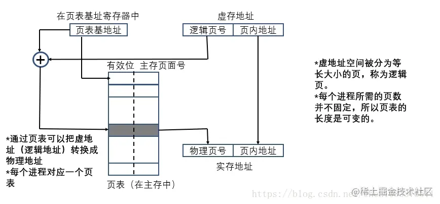(1)为了节省页表本身占用的主存空间,一些系统把页表存储在虚存中,因而页表本身也要进行分页。当一个进程运行时,其页表中一部分在主存中,另一部分则在辅存中保存。