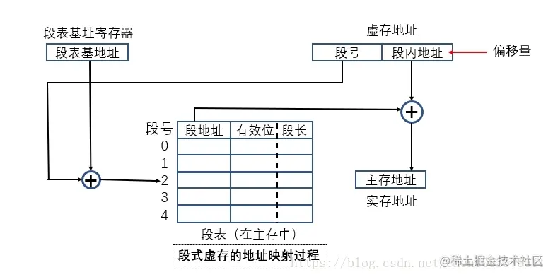 (3)由于段长不一定是2的整数次幂,因而不能简单地像分页方式那样用虚地址和实地址的最低若干二进制位作为段内偏移量,并与段号进行直接拼接,必须用加法操作通过段地址与段内偏移量的求和运算求得物理地址。因此,段式存储管理比页式存储管理方式需要更多的硬件支持。