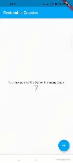 如下在 _RestorableCounterState 中进行操作:首先混入 RestorationMixin ,然后覆写 restorationId 和 restoreState 方法。提供 RestorableInt 对象记录数值 。