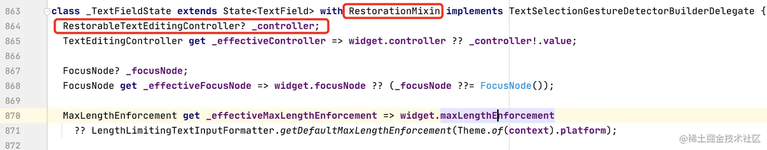 这时再看 TextField 组件的实现也是类似,也就说明 TextField 组件也具有这种恢复状态的特性。