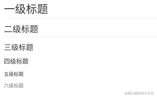 语法:若干个(1-6)#后接空格代表不同级别(1-6)的标题