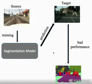 以一款大家熟悉且常见的 GTA5 游戏来说:在 GTA5 里,有一个任务就是采集 GTA5 游戏里的模拟数据,然后通过数据引擎这种自然而然的标注去降低标注成本。但是这里会出现一个问题:在这些模拟数据上训练的模型,在实际现实世界的时候,会出现性能的降低。因为传统的机器学习需要有一个前提条件,就是你的测试集和你的训练集是相同分布的,而你模拟数据集和现实数据集必然的就存在分布的差异。