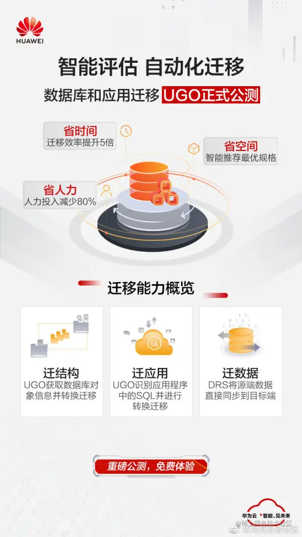 华为云数据库迁移与应用 UGO 现已开启免费公测,名额有限,立即体验: