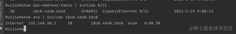 锐捷交换机查询端口对应的IP,IP对应的端口