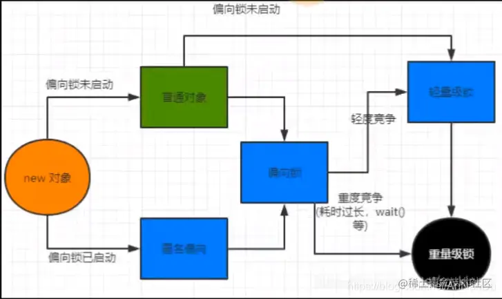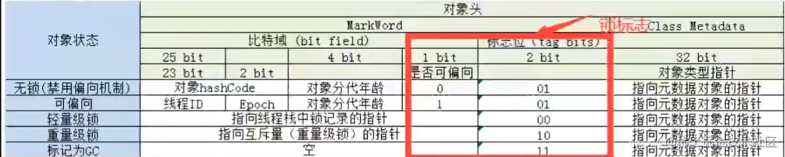 锁状态的编码:偏向锁、轻量锁、重量锁对应不同的锁的状态