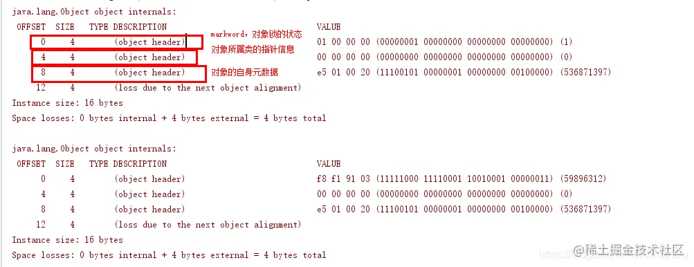 执行结果,java的锁就实在对象的markword中记录的一个锁状态,加锁前和加锁后只有markword发生了改变
