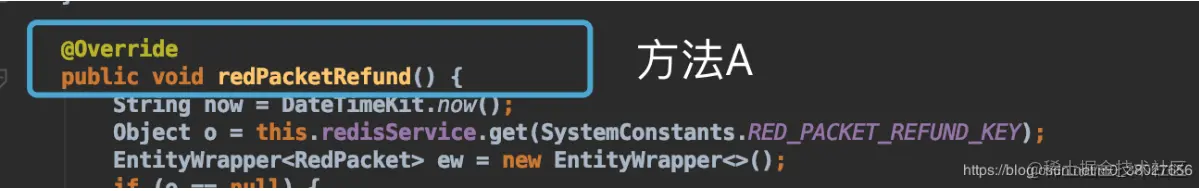 看到这里,有的看官可能在想,你在方法A上标个注解不就完了吗?为什么非要标注在方法B上?