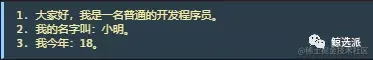 模板字符串使处理字符串变得更加容易,我们可以去掉转义字符,得到与预期代码完全一样的输出。